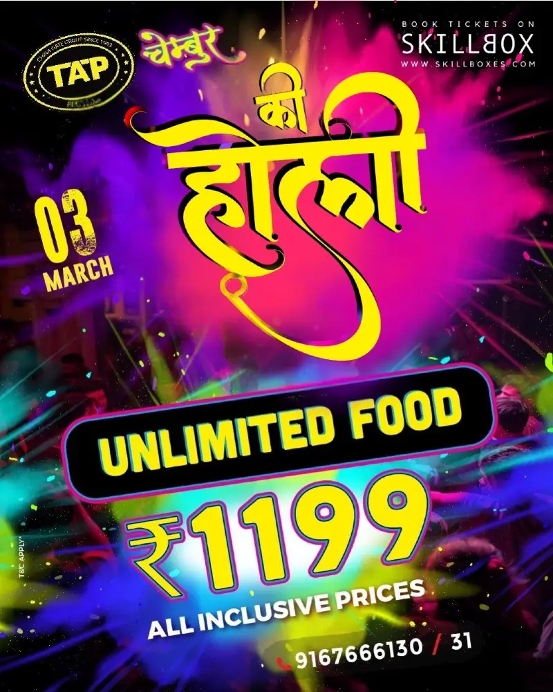 Read More: https://fests.info/cultural-fests/holi-events/holi-haiiiiii-at-tap-resto-bar-chembur.html/