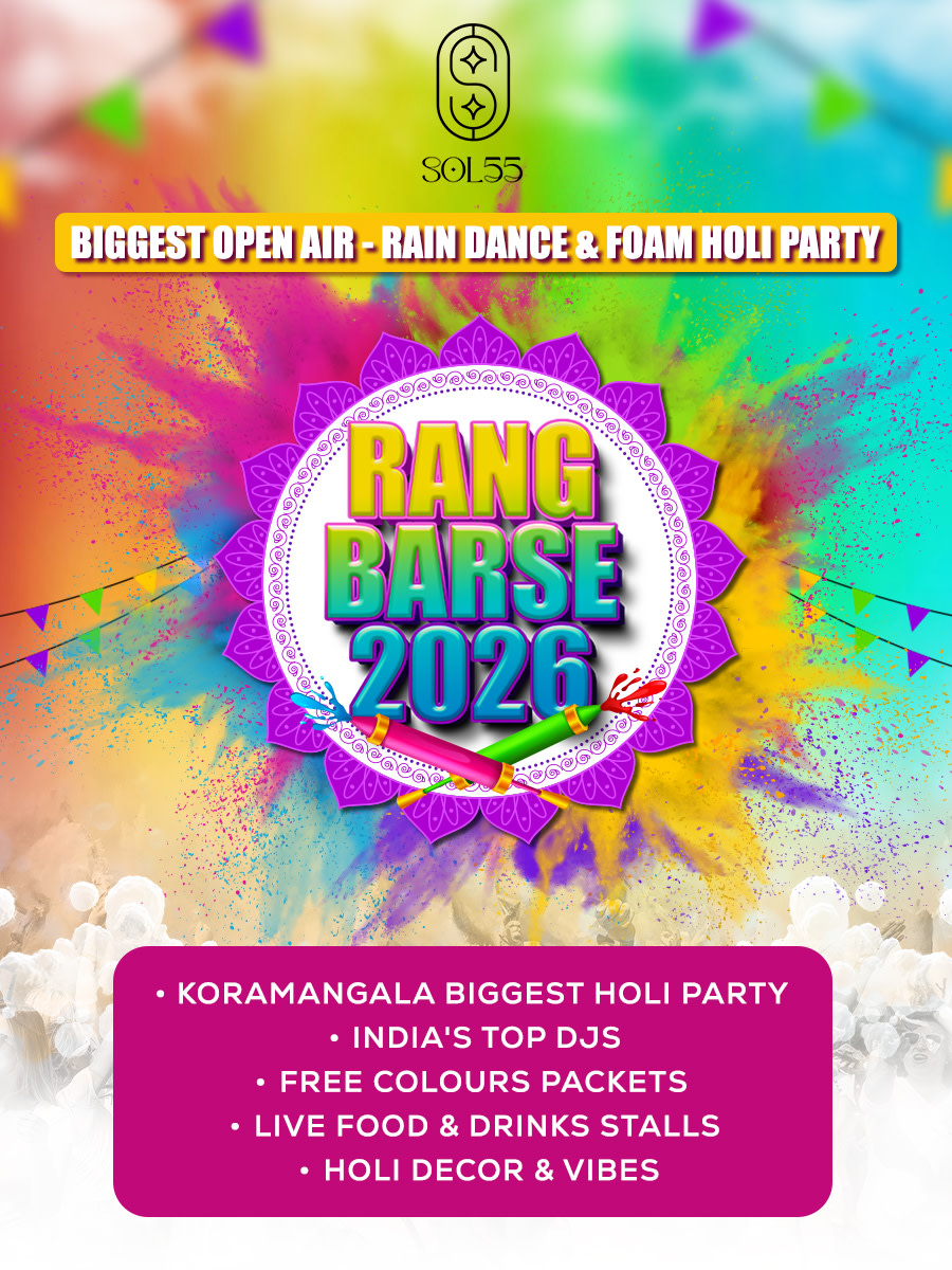 03/01/202603/04/2026Asia/KolkataRang Barse: Biggest Open Air-Rain Dance-Foam Holi CelebrationRead More: https://fests.info/cultural-fests/holi-events/rang-barse-biggest-open-air-rain-dance-foam-holi-celebration.html/SOL55 - Community Bar | Koramangala 4th Block, Bangalore, BengaluruMM/DD/YYYY151440use-title