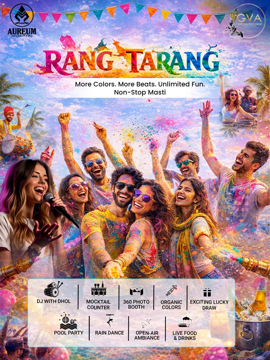 03/04/202603/04/2026Asia/KolkataRang Tarang – Holi Pool Party with DJ, Dhol and Rain DanceRead More: https://fests.info/cultural-fests/holi-events/rang-tarang-holi-pool-party-with-dj-dhol-and-rain-dance-2.html/AUREUM HOTEL AND RESORTS, GhaziabadtrueMM/DD/YYYY151440use-title
