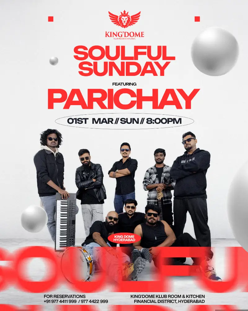 03/01/202603/01/2026Asia/KolkataSoulful Sunday ft. Parichay Live | Kingdome HyderabadRead More: https://fests.info/cultural-fests/music-concerts/soulful-sunday-ft-parichay-live-kingdome-hyderabad.html/Hyderabad, IndiatrueMM/DD/YYYY151440use-title