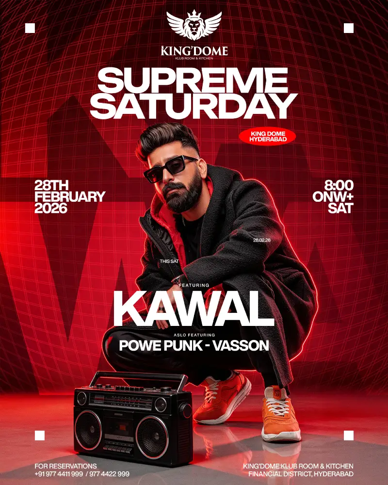 02/28/202602/28/2026Asia/KolkataSupreme Saturday ft. KAWAL | Kingdom’e HyderabadRead More: https://fests.info/cultural-fests/music-concerts/supreme-saturday-ft-kawal-kingdome-hyderabad.html/Hyderabad, IndiatrueMM/DD/YYYY151440use-title