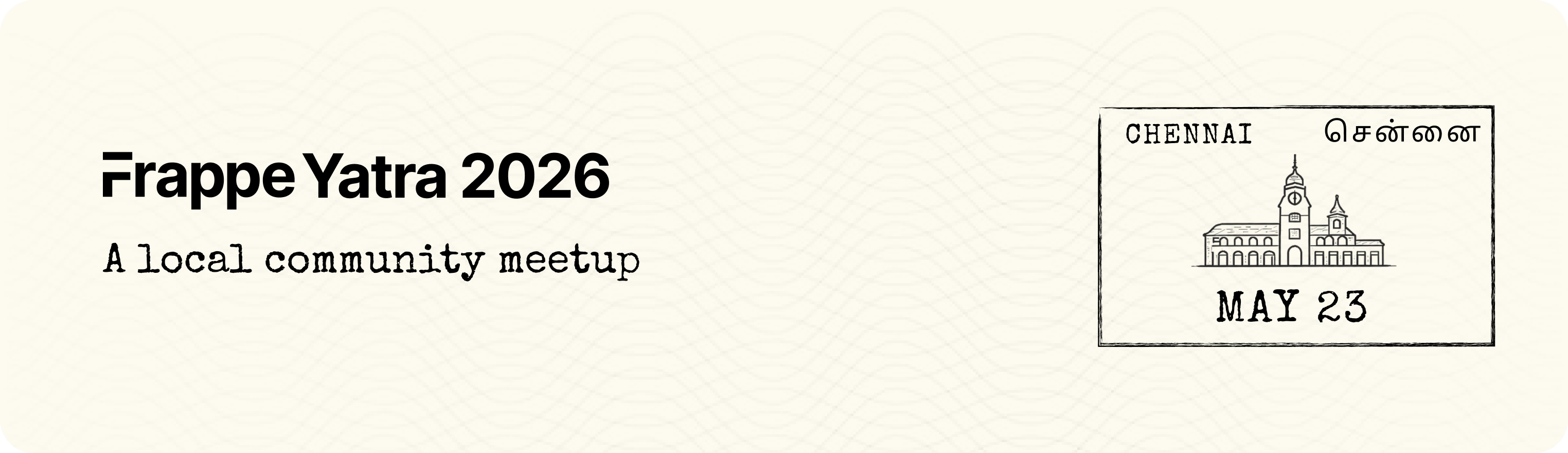 Join us for Frappe Local Chennai 2026, hosted in collaboration with Finstein. Local Chennai is part of the Frappe Yatra, a series of meetups across 7 cities in India. Know more here.