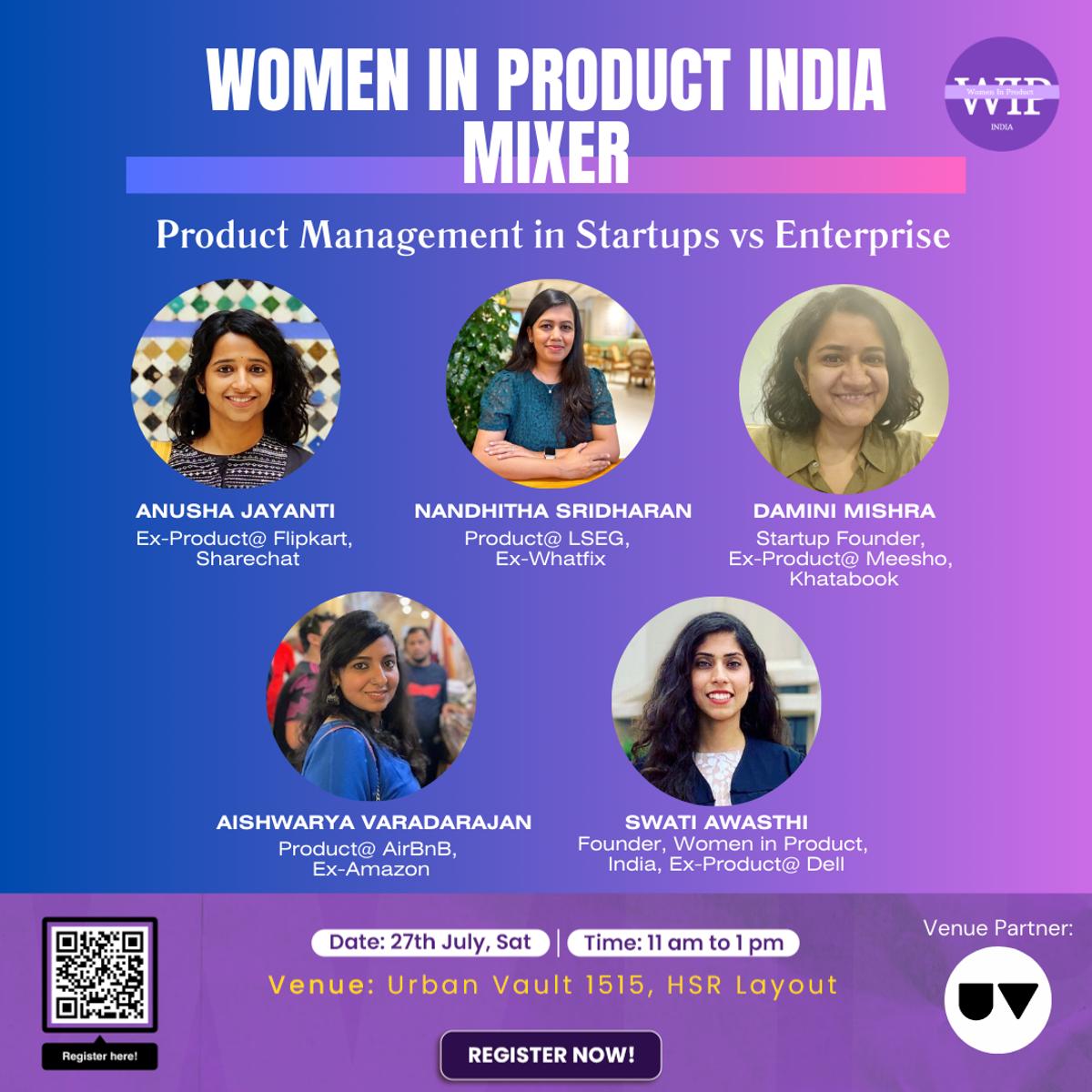 We’re excited to announce Women in Product India’s first networking event! This event brings together an accomplished panel to share their personal journeys and lead an insightful discussion on product management synergies and differences across startups and large enterprises.